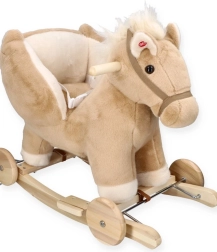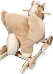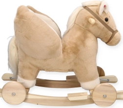 Il cavallo a dondolo Pegas beige con sedile unisce il fascino del giocattolo tradizionale a elementi pratici per la casa moderna. Il bambino può usarlo sulle classiche slitte in legno oppure, grazie alle ruote, passare alla guida sul pavimento. La sella è a un’altezza di circa 35 cm con le ruote e circa 31 cm quando si dondola sulle slitte, ideale per i bambini in età prescolare.