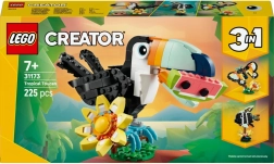 Porta a casa un tocco di tropici. Con 225 pezzi puoi costruire un tucano con fiore e fetta di anguria, con becco, ali e penne della coda posizionabili. Con gli stessi pezzi puoi anche creare una farfalla variopinta con ali mobili oppure un pesce tropicale con pinne mobili su supporto.