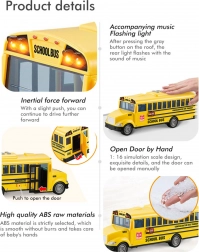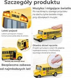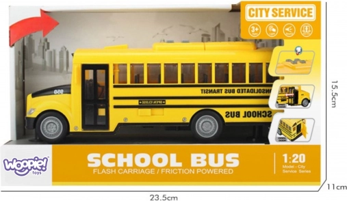 Introduce il tuo bambino nel mondo del trasporto urbano con il realistico autobus scolastico WOOPIE. Offre effetti luminosi e sonori, porte anteriori e posteriori apribili e una trazione a inerzia per un divertimento senza fine. Quattro ruote in gomma garantiscono una guida fluida e la struttura resistente in plastica robusta sopporta anche il gioco intenso. Un ottimo giocattolo per sviluppare la fantasia, la logica e la motricità dei bambini dai 3 anni in su.
