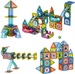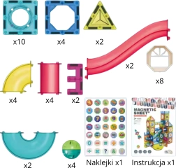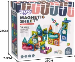 La confezione include 42 componenti, tra cui piastrelle magnetiche e sezioni sagomate della pista, per creare costruzioni varie, stabili e divertenti. I pezzi si collegano facilmente e saldamente grazie a magneti ad alte prestazioni, permettendo anche progetti più audaci.