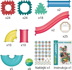 Il grande set da 128 pezzi offre un’ampia gamma di forme e colori per realizzare progetti semplici o avanzati. Gli elementi trasparenti permettono di seguire il movimento delle biglie e spiegano in modo naturale le leggi di velocità, gravità e inerzia. Il gioco sviluppa creatività, pazienza e abilità tecniche.