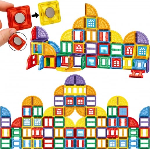 Costruzioni magnetiche 3D WOOPIE, set educativo Castello 100 pezzi. Magneti potenti, sviluppo di creatività e logica, adatto dai 3 anni. Creazioni piane e 3D.