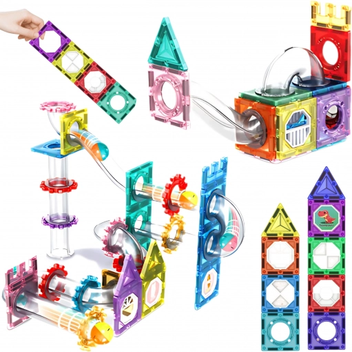 Questo set educativo offre infinite possibilità di costruzione, dalle piste semplici a strutture complesse e stabili. Grazie ai sicuri agganci magnetici, i pezzi si collegano facilmente e mantengono la forma, consentendo ai bambini di godersi una corsa fluida delle biglie e di sperimentare con velocità e direzione.