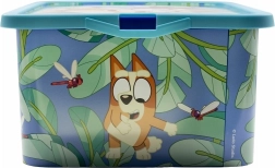 Pratica scatola contenitore in plastica con motivo BLUEY, offre un utilizzo multifunzionale per giocattoli, costruzioni e piccoli oggetti. È richiudibile con coperchio removibile e, grazie alle dimensioni compatte, si inserisce facilmente su scaffali e nelle camerette.
