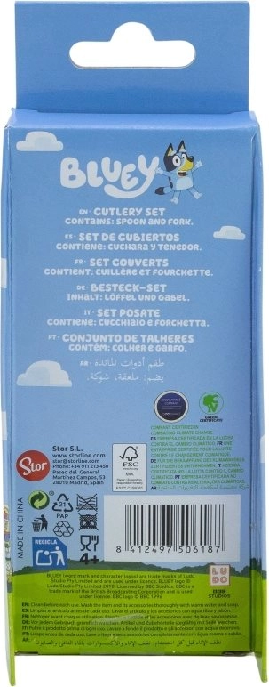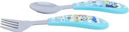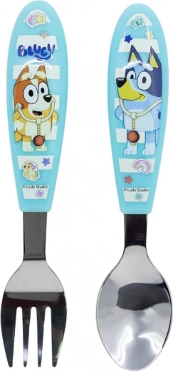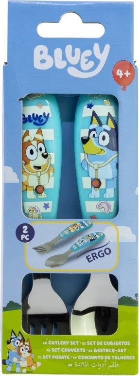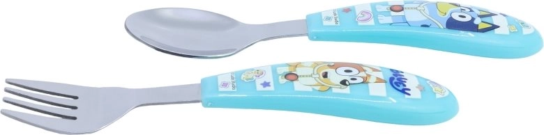 Il grazioso set di posate per bambini con il motivo BLUEY include cucchiaio e forchetta in acciaio inossidabile di alta qualità. Grazie alle forme arrotondate, l'uso è sicuro e confortevole per le manine dei più piccoli e il decoro sulle impugnature invoglia i bambini a mangiare in autonomia. Senza BPA.