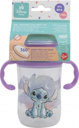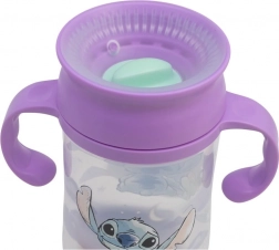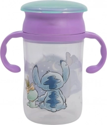 Pratica tazza da allenamento per bambini con capacità di 395 ml e magico motivo STITCH, aiuta i bambini a passare dal beccuccio alla tazza normale. Offre un bordo a 360° per bere, comode impugnature anti-ribaltamento, è senza BPA e molto facile da pulire.