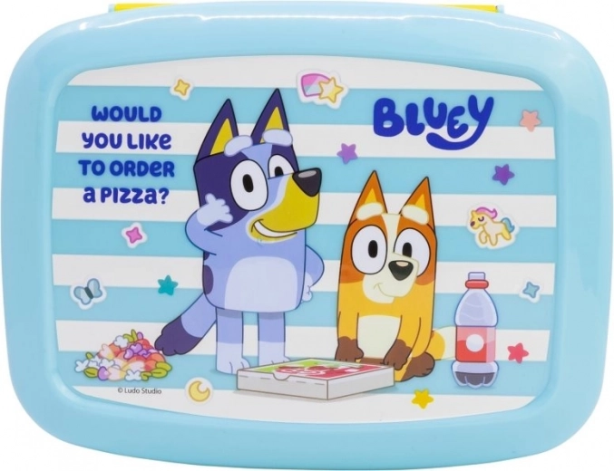 Pratico porta pranzo con motivo di Bluey per bambini. Offre 4 scomparti su 2 livelli per separare il cibo in modo ordinato, è realizzato in materiale resistente ed è senza BPA per un uso quotidiano sicuro.