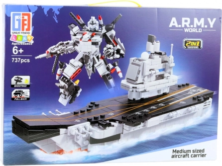 Questo set universale offre un doppio divertimento a bambini e adulti: una portaerei dettagliata con equipaggiamento di coperta realistico e un robot con elementi mobili per pose dinamiche. Grazie all’alto numero di pezzi, potrai goderti una costruzione approfondita e scenari di gioco avvincenti.
