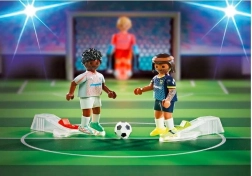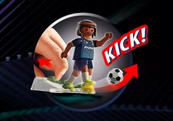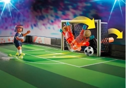 Apri l’arena pieghevole, schiera le squadre e inizia la partita! Questo set della linea PLAYMOBIL Sports & Action offre un gioco dinamico con fantastiche funzioni. Grazie a un pratico meccanismo è possibile far calciare i giocatori il pallone e mirare con precisione alla porta, mentre i portieri su aste mobili possono reagire rapidamente e parare i tiri.