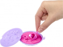 Apri il vano di sabbia e usa la palettina per dissotterrare mini accessori. Un gioco sensoriale che stimola creatività e passione da collezionista.