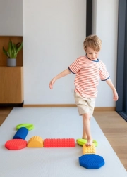 Componi liberamente il tracciato con pietre, blocchi e travetti colorati e trasforma il movimento in divertimento. Ogni elemento ha un’altezza diversa e una superficie in rilievo per un passo sicuro e un esercizio in sicurezza. Perfetto per attività ludiche in casa, asili, doposcuola e terapia sensoriale.
