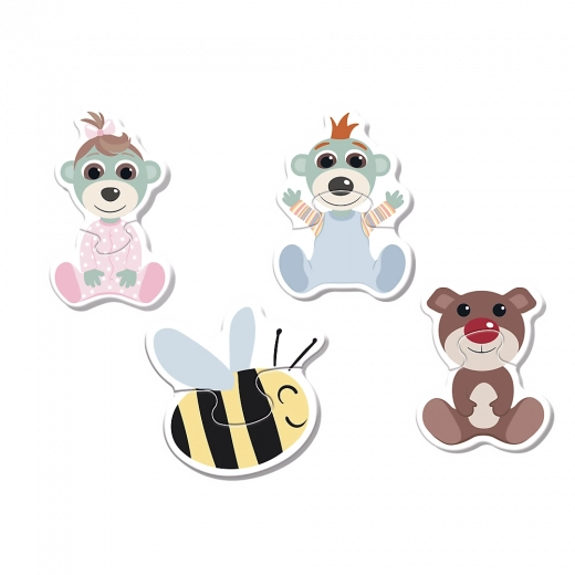 Primi puzzle per i più piccoli: 4 puzzle da 2 pezzi grandi, illustrazioni colorate di bebè e ape. Sicuri, robusti e facili da afferrare. Adatti da 1 anno.