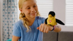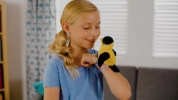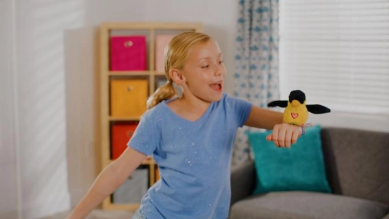 Questo allegro uccellino interattivo entusiasma i bambini con suoni e movimento. Una volta agganciato al polso, diventa un compagno che reagisce alla voce, ripete parole semplici e canta la sua melodia. Grazie alle ali battenti sembra vivo e coinvolge i bambini nel gioco.