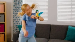 Un simpatico pappagallo interattivo di colore blu porta ai bambini tantissimo divertimento. Ripete le parole, canta una canzone degli uccellini e sbattere le ali. Grazie al supporto si aggancia facilmente al polso per giocare a casa e in viaggio.