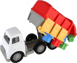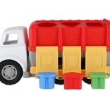 Grazie alle ruote libere il camion si muove facilmente e in modo fluido sul pavimento, le sei ruote garantiscono stabilità e sicurezza. Il gioco favorisce motricità fine, coordinazione occhio–mano e apprendimento della raccolta differenziata attraverso il gioco. Dimensioni ideali per le mani dei bambini: ca. 13 × 17 × 34 cm.