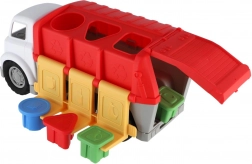 La parte superiore del camion presenta fori per inserire le forme, che sviluppano logica e coordinazione occhio–mano. I bambini apprendono naturalmente forme e colori a ogni corsa.