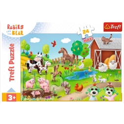 Grande puzzle per bambini con tema BOBASKI E ANIMALI di Trefl, contiene 24 pezzi extra grandi adatti alle piccole manine. Una volta montato, crea un'immagine di 60 × 40 cm. Materiali di alta qualità, carta calandrata lucida per un montaggio confortevole e produzione ecologica in Polonia. Adatto ai bambini da 3 anni.