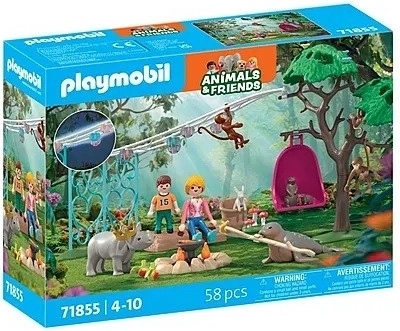 Il piccolo rinoceronte festeggia il compleanno e tutti sono invitati! La foca prepara deliziose mele al forno sul fuoco, il coniglietto si prende una pausa dopo le allegre gare e gli ospiti si riuniscono sotto la ghirlanda che si illumina al buio. Il set PLAYMOBIL offre tantissime possibilità per un gioco creativo di giorno e di notte.