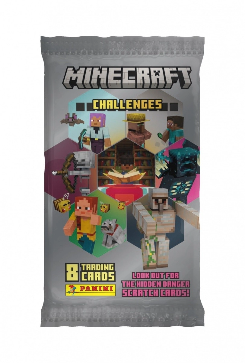 L’intera collezione offre 243 carte, di cui 63 speciali (ad es. scratch, fluo, foil) e carte uniche XTREME DANGER per le missioni più impegnative. Inoltre, puoi collezionare le lettere e completare la parola “MINECRAFT” nell’album da collezione.