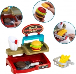Il set Burger shop è un kit da cucina pensato con cura per i piccoli chef, che offre un’esperienza autentica nella preparazione dei preferiti del fast food. I bambini possono combinare liberamente i singoli elementi per creare un burger esattamente a loro gusto, completarlo con patatine e scegliere ketchup o maionese – proprio come in una vera cucina.
