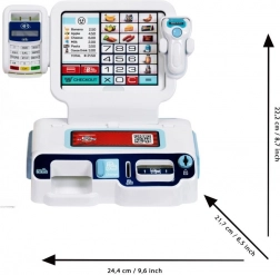 Con questa cassa self-service i bambini si ritroveranno in un attimo nell’ambiente di un supermercato, un self-service o un ristorante. Grazie allo scanner luminoso e sonoro, alla tastiera con effetti e al display retroilluminato, esercitano calcolo, comunicazione e motricità fine.