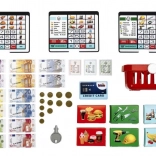 Inclusi banconote, monete e carta di pagamento. I bambini possono riporre i soldi nel cassetto, inserire le monete e completare l’acquisto con un “bip” della carta.