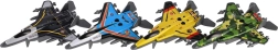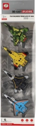 Set di quattro moderni caccia a reazione con corpo in metallo e meccanismo a retrocarica (pull-back) che offre tanto divertimento ai piccoli piloti. Ogni aereo ha un design accattivante, una struttura robusta e una colorazione originale, per un gioco vario e avvincente. La dimensione ideale di 10 cm si adatta perfettamente alla mano dei bambini e facilita la manipolazione.