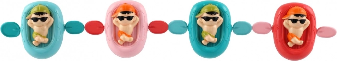 Omino a carica su materassino per l’acqua. Giocattolo in plastica resistente 13 × 9 cm in 4 colori per bambini dai 3 anni. Divertimento per vasca e piscina.