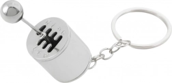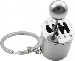 Elegante portachiavi in metallo a forma di cambio con leva del cambio mobile che farà felice ogni automobilista. È resistente, facile da portare e grazie al robusto anello in metallo si aggancia facilmente a chiavi, zaino o borsa. Perfetto come regalo originale e come gadget antistress.