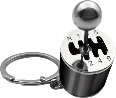 La piastra superiore realistica con schema a 6 marce e lo scorrimento fluido della leva trasformano il portachiavi in un ingegnoso antistress.