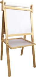 Questa lavagna in legno, a doppia faccia e multifunzionale, è un ottimo strumento per sviluppare creatività, motricità fine e abilità scolastiche. I bambini possono alternare il disegno con pennarello cancellabile a secco, la scrittura con il gesso o la creazione su carta dal rotolo integrato.