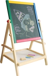 Questa lavagna in legno, bifacciale e multifunzionale, è un ottimo alleato per il gioco e lo studio di ogni giorno. I bambini possono esercitarsi a scrivere, disegnare e fare i primi conti sulla superficie bianca magnetica cancellabile a secco oppure creare con il gesso sulla tradizionale superficie nera. Grazie alla mensola spaziosa, tutti gli accessori sono sempre a portata di mano.