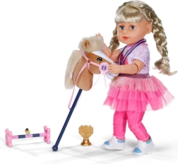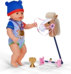 Il set BABY born per hobby horsing permette alle bambole di unirsi alla tendenza delle gare con il cavallino su bastone. La morbida testa in peluche è sicura e piacevole al tatto, perfetta per passeggiate quotidiane e discipline competitive. L’allenamento divertente è assicurato dalla simpatica paperella Berta, che dona al gioco un carattere giocoso.
