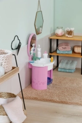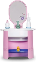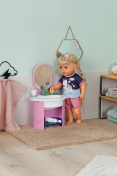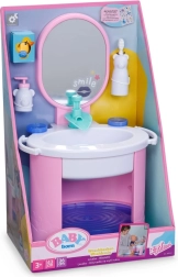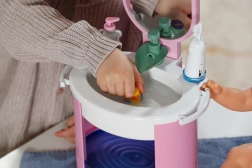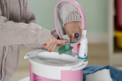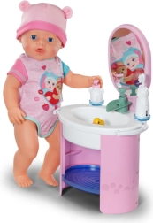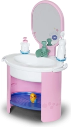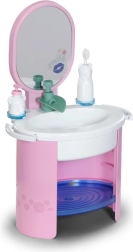 Il lavandino Baby Born offre ai bambini un gioco bagno autentico senza bisogno di batterie. Grazie al pompaggio manuale, nel lavandino scorre acqua vera, trattenuta dal simpatico tappo Berta a forma di paperella. I bambini possono così esercitare le abitudini igieniche della loro bambola in modo divertente e sicuro.
