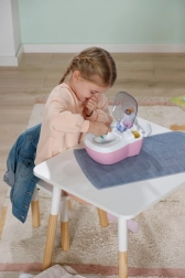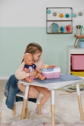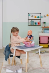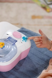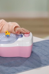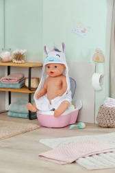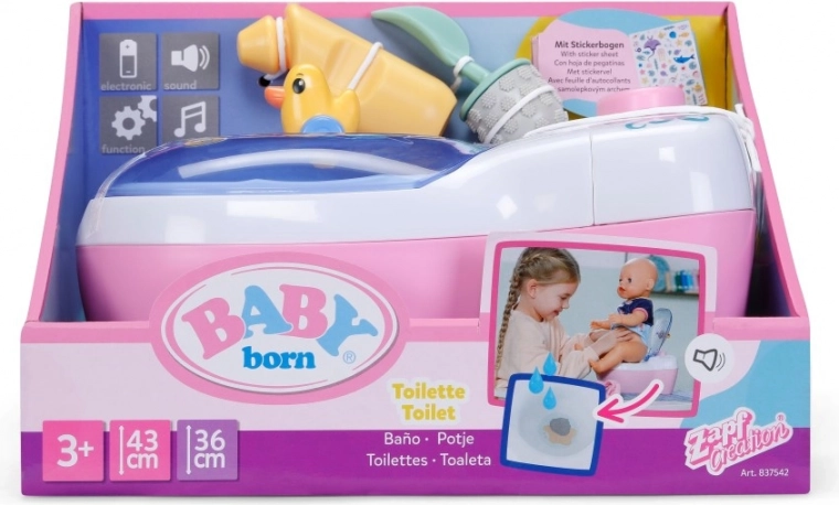La toilette interattiva BABY born trasforma la cura quotidiana della bambola in un rituale divertente. Non appena la bambola si siede sull’asse, si sentono realistici suoni di spruzzi e, se rimane seduta più a lungo, partono una melodia buffa e poi il suono dello sciacquone. Tutto questo motiva i bambini a esercitare le abitudini igieniche giocando.