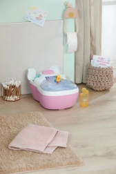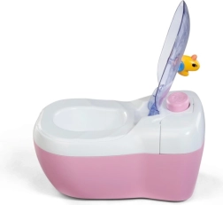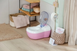 Rendi più divertente l’allenamento al vasino con la toilette interattiva BABY born, che offre suoni divertenti, melodie buffe e magia con l’acqua. Grazie alle immagini della pipì e della cacca, ai pratici scomparti e allo spazzolino WC con detergente, i bambini imparano l’igiene in modo ludico.
