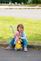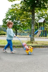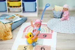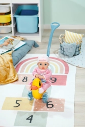 Lo spingino Berta è l’accessorio ideale per piccoli e piccole caregiver. Grazie all’asta di guida rimovibile e regolabile si adatta facilmente all’altezza del bambino e offre una conduzione confortevole durante la marcia. Lo schienale regolabile e la barra di fissaggio assicurano che ogni bambola BABY BORN si sistemi comodamente sul seggiolino.