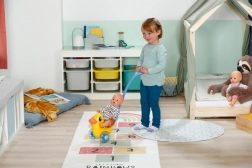 Le ruote trasparenti con sonaglio e perline aggiungono un divertente effetto sonoro alla guida e stimolano la percezione sensoriale. Sotto il seggiolino si nasconde un vano segreto per gli oggetti piccoli, rendendo ogni passeggiata ancora più avventurosa. La qualità della realizzazione garantisce un gioco duraturo pieno di immaginazione.