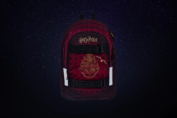 Materiale riciclato idrorepellente, inserti riflettenti e affidabili cerniere YKK, completati dal design HOGWARTS con cinghie per skateboard e charm di stile.