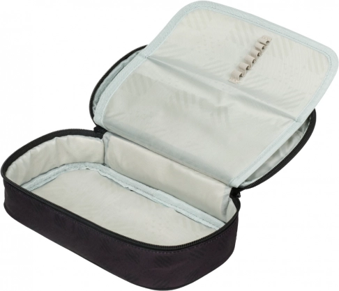 Lo scomparto principale contiene tutta la cancelleria, mentre la doppia patta ribaltabile con elastici e taschine mantiene tutto perfettamente in ordine.