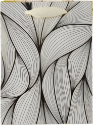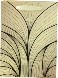 Elegante borsa regalo con motivo ondulato dorato, ideale per ogni occasione: compleanni, matrimoni e anniversari. Realizzata in cartoncino decorativo di qualità con robusti manici in cordoncino per un trasporto confortevole. Il suo aspetto moderno e lussuoso valorizza qualsiasi regalo.