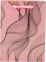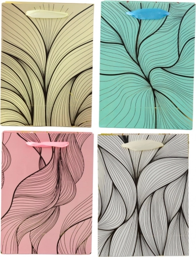 Questa borsa regalo colpisce per il design moderno e le linee dorate di lusso, che sullo sfondo colorato creano un delicato effetto onda. Grazie alla struttura robusta è adatta anche a regali più pesanti, e le sue dimensioni sono perfette per oggetti di media grandezza.