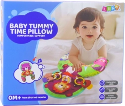 Il cuscino di supporto per neonati è progettato per favorire il corretto sviluppo sin dai primi giorni di vita. La forma ergonomica facilita la posizione a pancia in giù, rafforzando naturalmente i muscoli e preparando il bambino alle tappe successive come sedersi e gattonare. Materiali morbidi e piacevoli insieme a colori a contrasto stimolano vista, udito e tatto.
