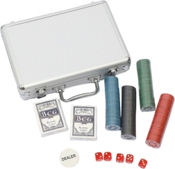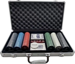 Goditi l’atmosfera del casinò ovunque con questo set da poker professionale. Include 500 gettoni in quattro colori, due mazzi di carte da gioco e cinque dadi rossi. Il tutto è riposto in una resistente valigetta in alluminio con manico e chiusura per un trasporto sicuro.