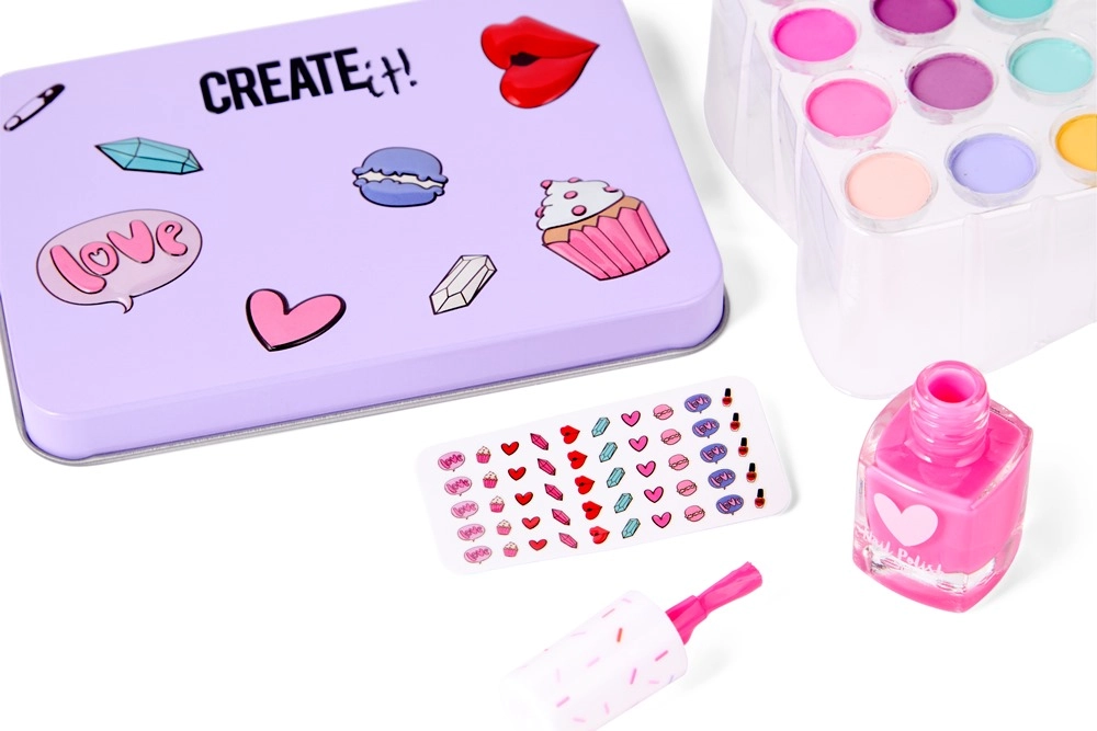 Set per bambini di ombretti e smalti per unghie in scatola di latta