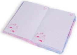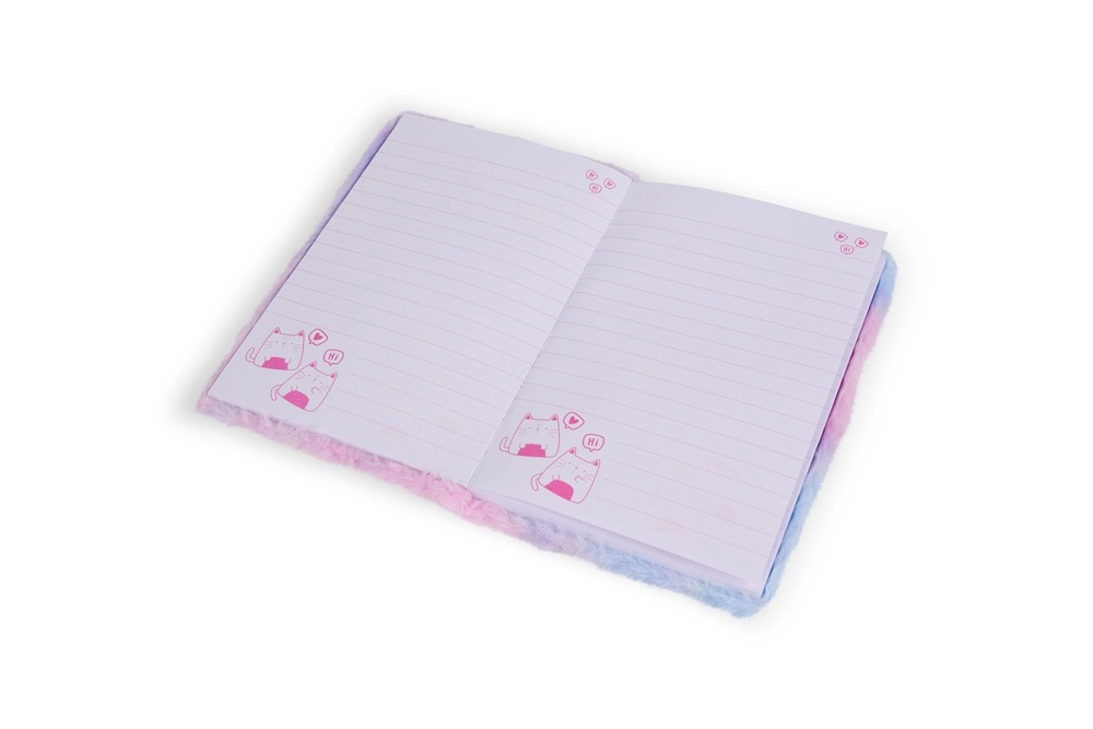 Elegante e pratico quaderno in peluche formato A5 con motivo koala, perfetto per bambini e adulti. Ha una copertina in peluche morbida in tonalità di grigio e argento, pagine a righe per una scrittura ordinata e dimensioni compatte per portarlo facilmente a scuola, al lavoro e in viaggio.