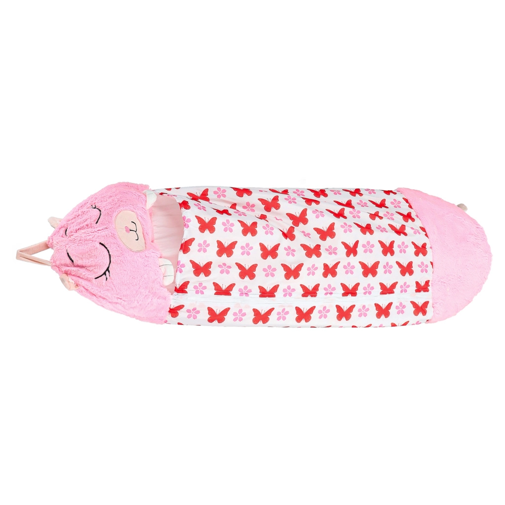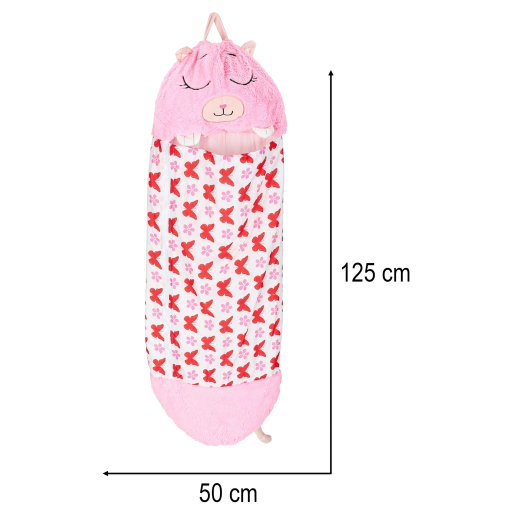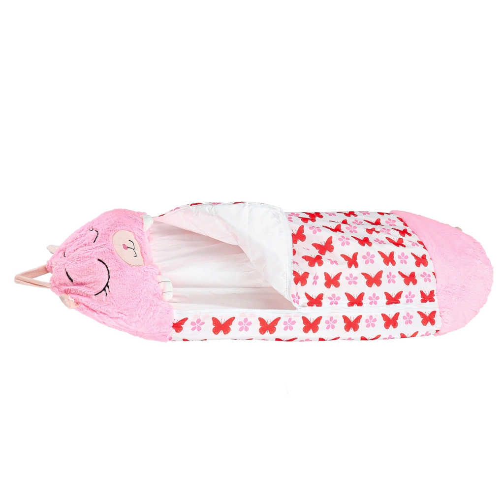 Cerchi una soluzione comoda e divertente per i pernottamenti dei bambini? Questo sacco a pelo rosa 2 in 1, una volta ripiegato, si trasforma in un adorabile peluche che i bambini ameranno. La superficie in peluche morbida e le imbottiture calde in fibre PP garantiscono un sonno confortevole per tutta la notte.