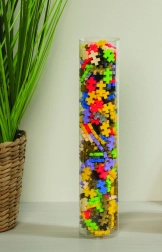 La semplice forma a “plus” si collega facilmente in strutture solide, sviluppando motricità fine, vision spaziale e creatività. La confezione compatta è ideale in viaggio e come regalo di stile per gli amanti dell’arte e del design.