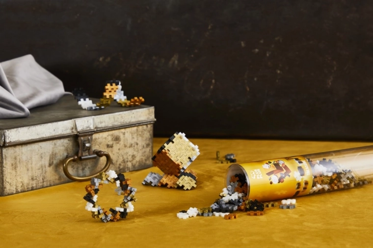 Il set Plus-Plus Tesoro offre 100 pezzi originali nei colori oro, argento, rame, nero e madreperla. L’esclusiva forma dei pezzi permette di costruire facilmente mosaici 2D e modelli 3D – dalle idee semplici fino a strutture elaborate. Il pratico tubo è perfetto per i viaggi, l’asilo e la casa.