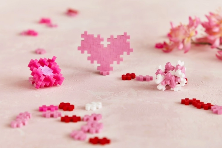 Plus-Plus I love you tubo con 240 pezzi in colori romantici. Costruzioni creative da viaggio, senza ftalati, in plastica riciclata, prodotto in Danimarca. 5+.